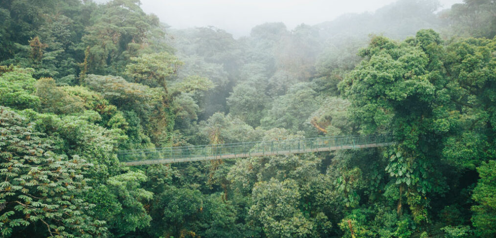Zunächst frühstücke ich im Hotel. Ich kann wählen zwischen dem süssen amerikanischen oder dem herzhaften amerikanischem Frühstück. Ich nehme letzteres , bekomme aber trotzdem pancakes dazu. Es gibt Omelette mit Reis und Bohnen, dazu Toast ,Marmelade aus Ananas und Mango , Käse und Pancakes. Kaffee und O‘Saft kann man sich selber nehmen.Der Kaffee schmeckt fantastisch hier! Ich lasse mir viel Zeit beim frühstücken und packe dann meinen Rucksack für die erste der drei Touren, die hanging-bridges-Tour. Im Monteverde NP kann man sehr viele Dinge machen, die Stadt ist voll von Touristen, Abenteurern und Backpackern.Vor allem junge Leute zieht es hier her. Neben dem berühmt.berüchtigten canopy (es gibt hier dutzende Ziplines , mit verschiedenen Schwierigkeitsgraden und Höhen) dazu kann man Quadtouren buchen, Klettertouren, halsbrecherische Abfahrten mit dem Mountainbike durchführen oder eben wandern: z.B. über die hängenden Brücken. Ich bevorzuge die Wanderung, für die man ca.3;5h einplanen muss.